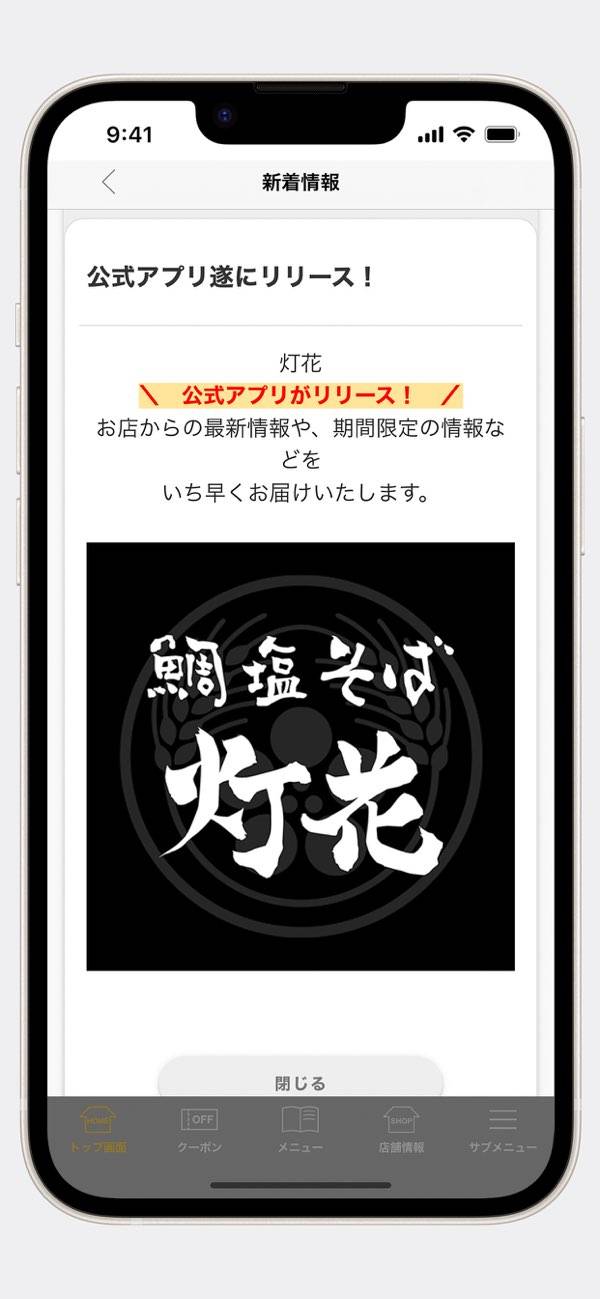 会員限定特典が満載! 鯛出汁ラーメン専門店「鯛塩そば 灯花」の公式アプリ