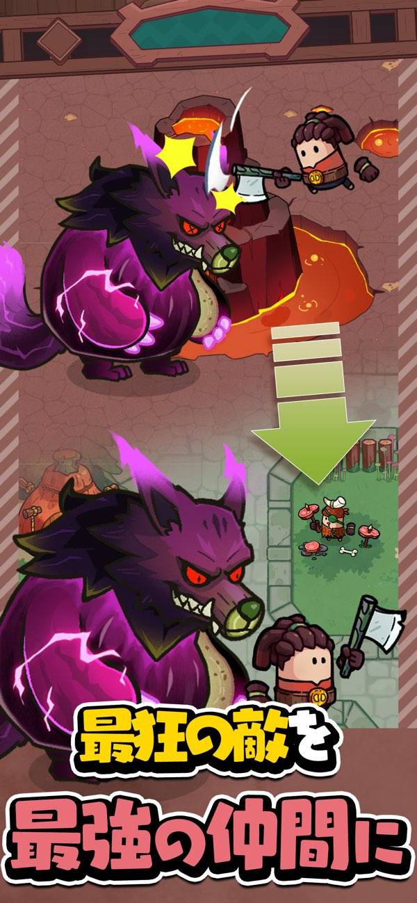 モンスターを倒して食材を集め、料理でキャラクターを強化するRPGです。指1本での移動とオートバトルで、大量のモンスターを一掃。倒した敵から食材を集め、料理を作成すればキャラクターを強化可能です。狩れば狩るほど、食べれば食べるほど強くなっていくので、冒険に出るのがどんどん楽しくなっていきますよ。