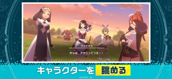 作品の枠を超えてパーティーを組み、多数のクエストに挑みます。古き良きオート進行をベースとしながら、探索状況やパーティーキャラに合わせて1枚絵が変化するシステムが特徴的。