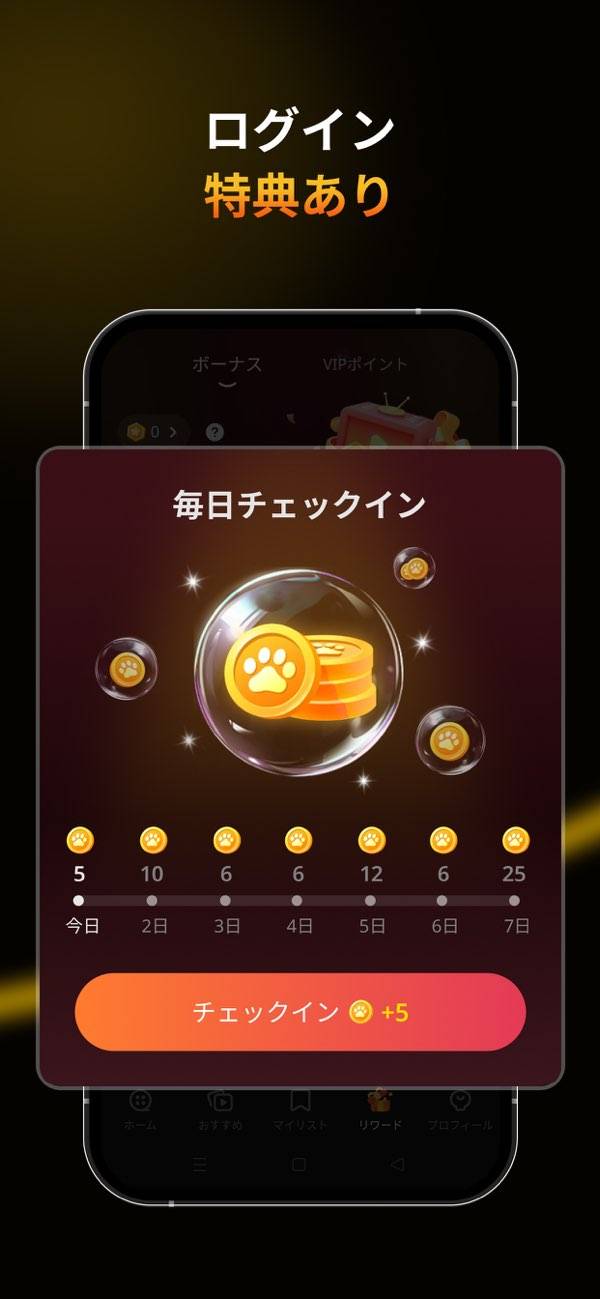 毎日ログインすることでコインを貰えます。このログインボーナスのほかにも、デイリータスク機能を搭載。タスクをクリアするとコインが貰えるため、よりたくさんストーリーを観たい方は、こちらも一緒にチャレンジしてみるといいでしょう。