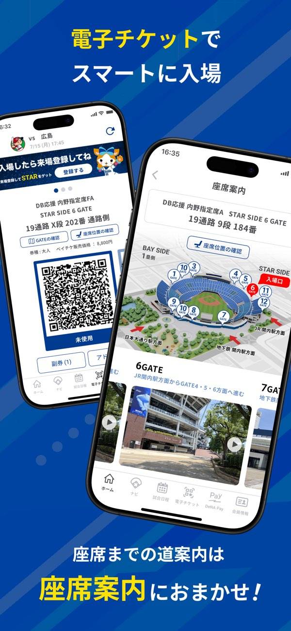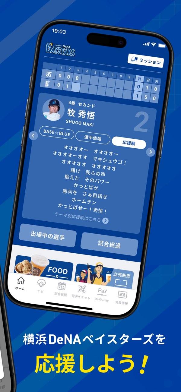 ベイスターズと同じ空間にいる時間を、より濃密に。横浜DeNAベイスターズ公式の、球場観戦者向けアプリです。チケットの電子化、試合の見どころ配信、フードコードの案内など横浜スタジアム(以下、ハマスタ)を心置きなく楽しむための機能が満載。