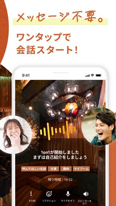 いいねやメッセージのやり取りは不要で、すぐに1対1のトークが始められます。顔出し不要のボイスチャットで、外見を気にせず相手の人柄や価値観をじっくりと知ることが可能。トークに自信がある人なら、より効果的に恋活を進められるでしょう。