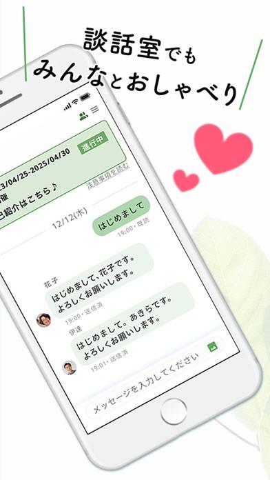 さまざまテーマに沿って自由に会話ができる「談話室」機能を搭載。趣味の話から時事ネタまで、気になる話題で盛り上がれます。自分で会話テーマを提案することもでき、共通の興味を持つ人との出会いのきっかけになるでしょう。