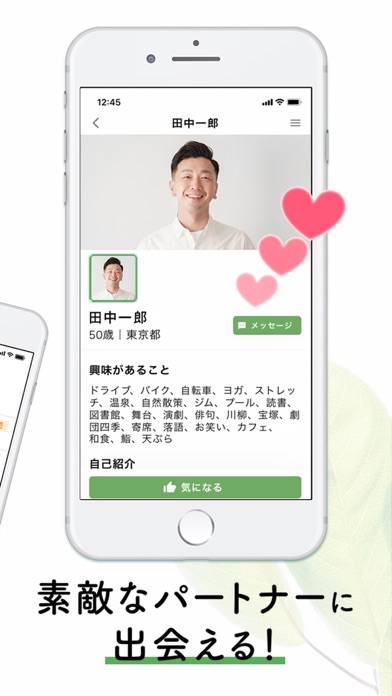 20代が多いマッチングアプリとは異なり、50代以上の人同士の出会いに特化しています。多くの利用者が50代以上のため感性が似ている人と交流可能。さらに「友達から」「趣味を共に」「生涯のパートナーに」など、理想の関係性を自由に選べる点も魅力です。