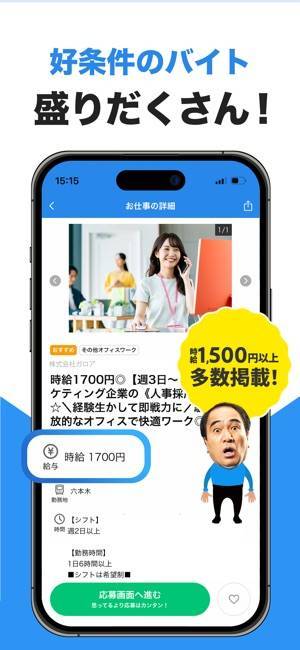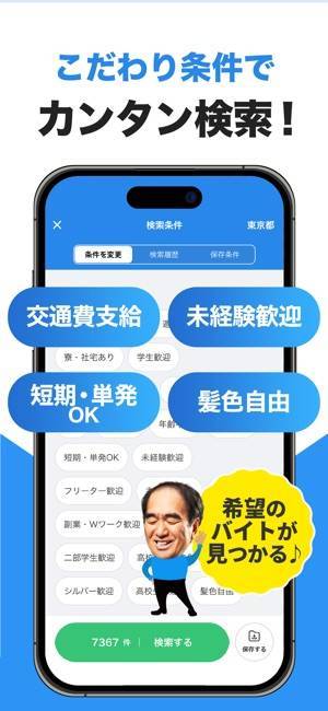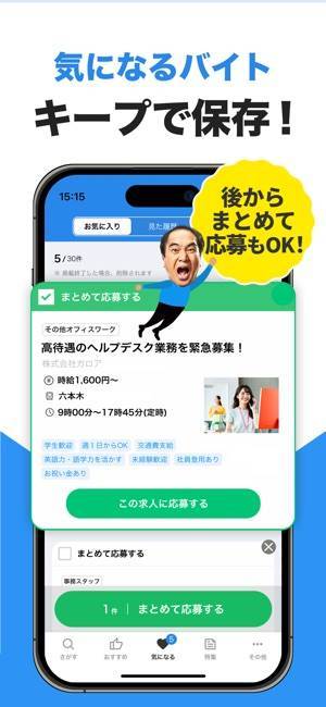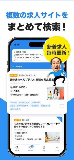 オールマイティな幅広さが特徴的な求人検索アプリです。複数の求人サイトをまとめて検索可能で、北海道から沖縄までの全国対応。アルバイトのほか、正社員、派遣、業務委託の求人も掲載されています。