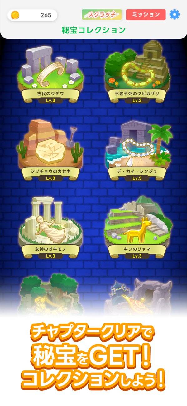 マッチパズルで遊ぶだけで、LINEポイントを獲得できるアプリ。上海麻雀のようなルールになっており、積みあがっている石板から同じものを3枚ずつそろえていきます。難易度は高くなく、誰でも遊びやすいところが魅力です。