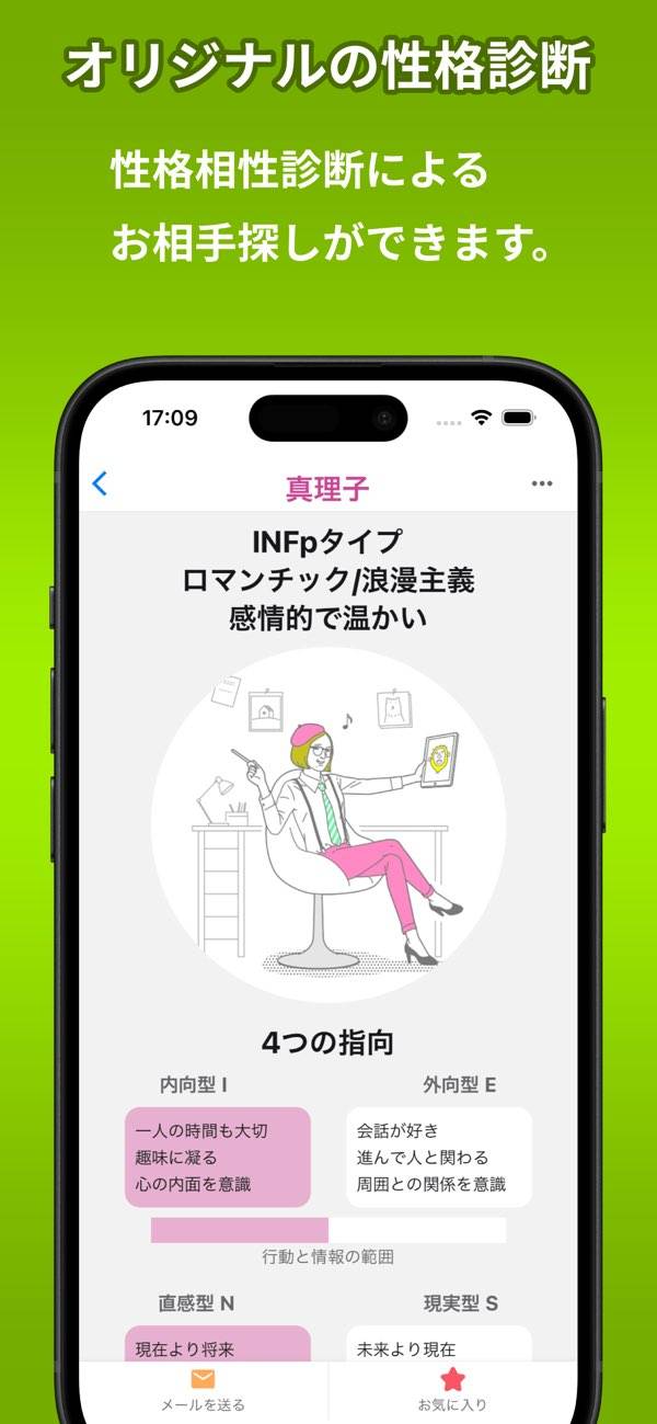 自分の魅力を伝えやすい工夫が満載です。充実したプロフィールに加え、性格診断で自然と価値観が見えたり、日記機能で日常の一面を共有したりが可能。そのため、お互いの人となりを知る楽しさを感じながら、自然な交流が生まれていきます。