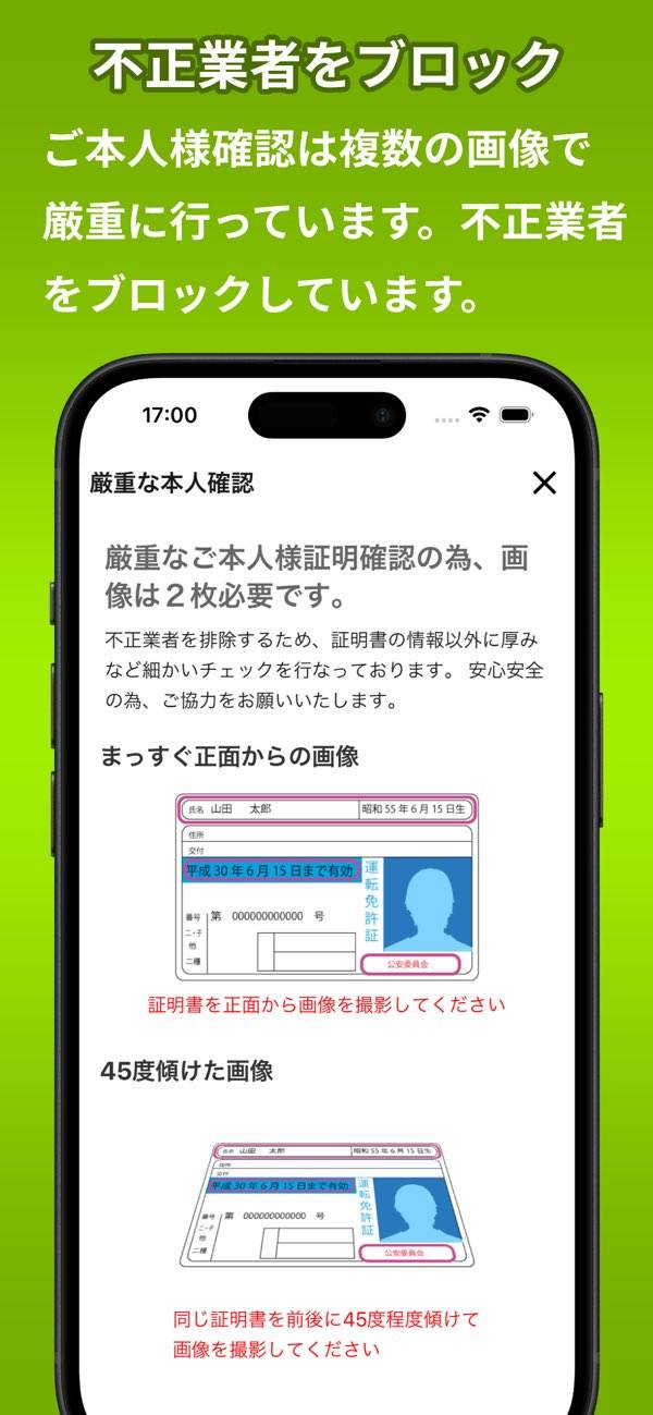 | 使用できる本人確認書類 | 運転免許証、マイナンバーカード、健康保険証、パスポート |