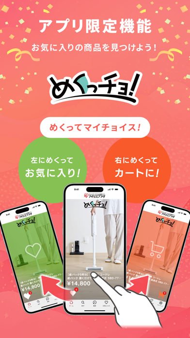 - 直感で商品と出会う、「めくっチョ!」というアプリ限定の機能も搭載