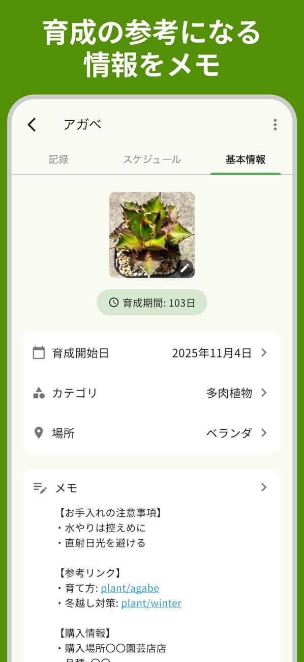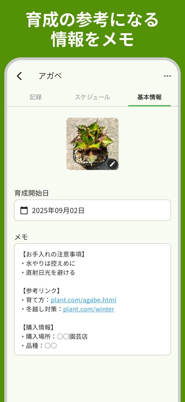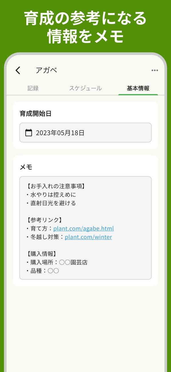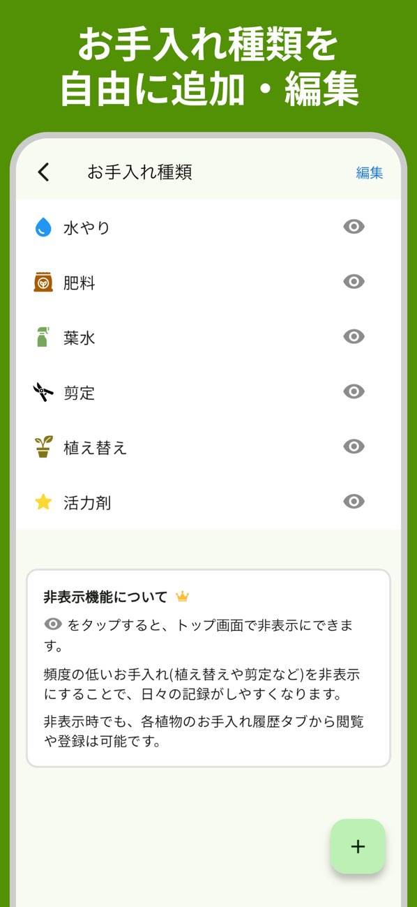 - 水やり以外も自由に追加できる。植物に合わせた手入れを行える