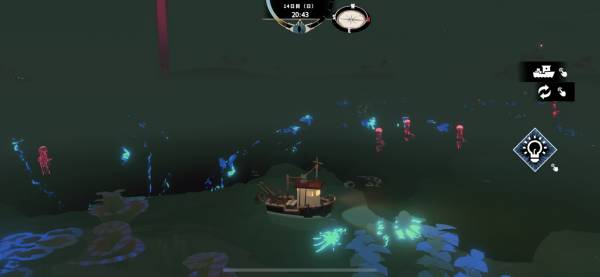本ゲームは昼と夜の時間帯があり、夜の海は徐々に正気度(SAN値)が減るシステム。減れば減るほど幻覚が見えるなど、特別なイベントがあなたを待っています。