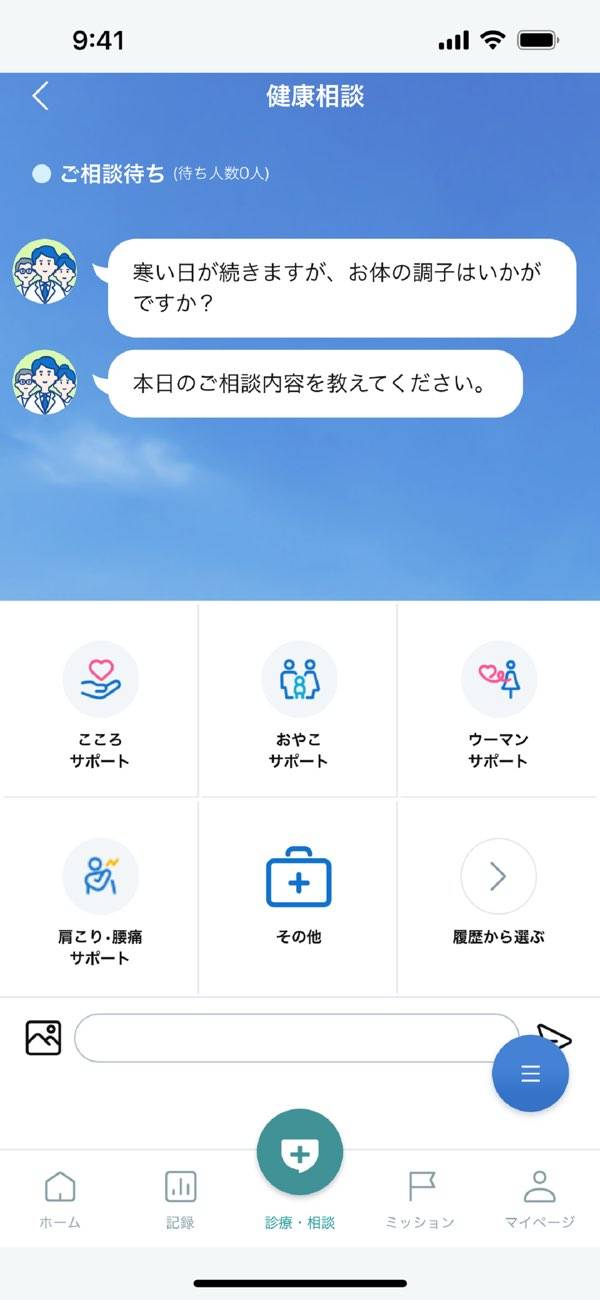- 24時間365日、チャット形式で医師や看護師に健康相談できるアプリ