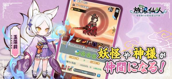 程よく肩の力を抜きながら楽しめる放置系RPGがこちら。うっかり破門された主人公が、元姉弟子に貸したお金を取り戻すというストーリーはそこそこに、コミカルながらも神秘的な東洋風の雰囲気を味わえます。