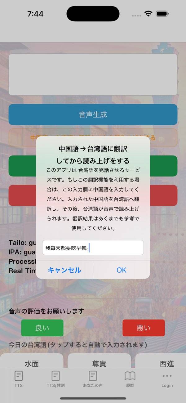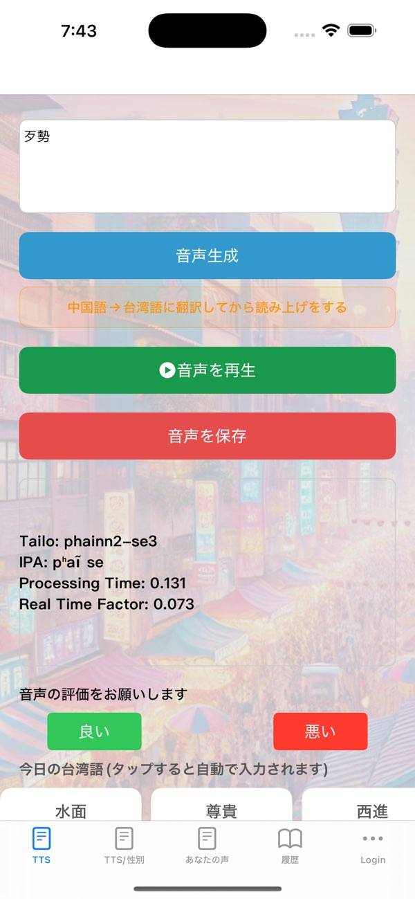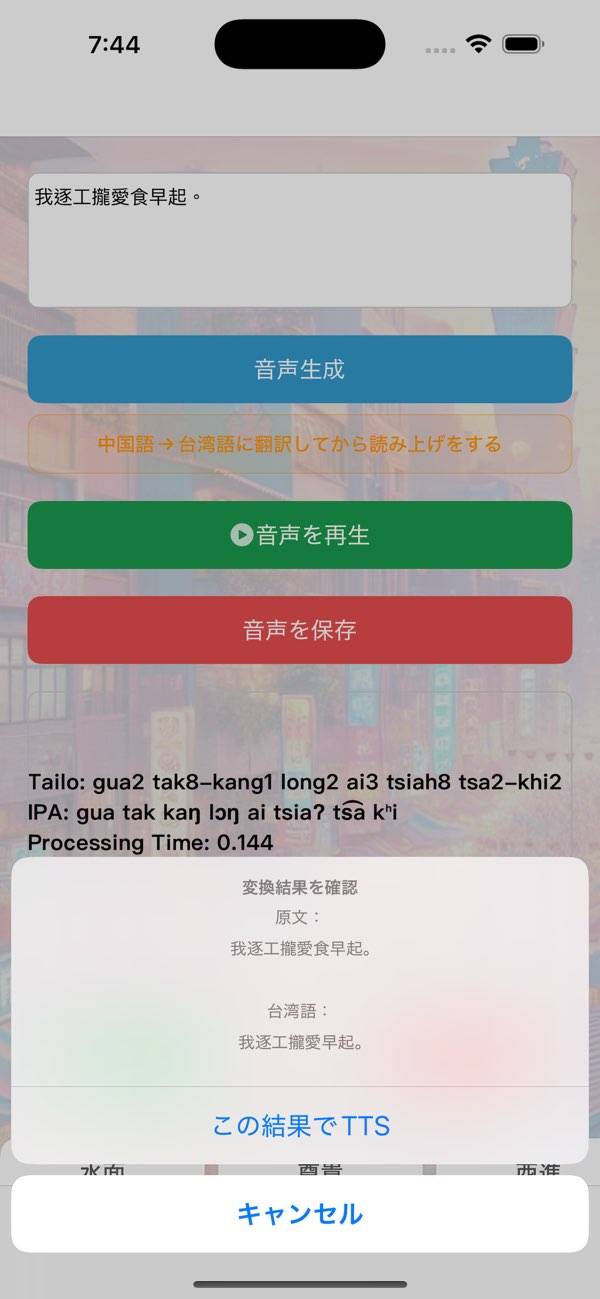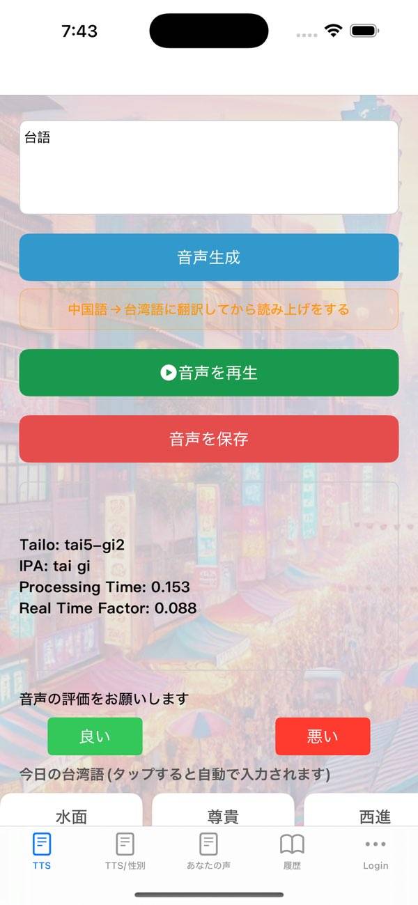 - 台湾語の文章を入力すると、読み上げ音声を再生してくれるアプリ