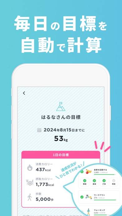 毎日の食事を簡単に記録でき、カロリー計算や栄養素の可視化が可能です。目標設定に合わせて1日の摂取カロリーが計算され、食事内容を入力すると「食事スコア」として評価。具体的なアドバイスも提供されるため、何をどう改善すべきかが一目瞭然です。