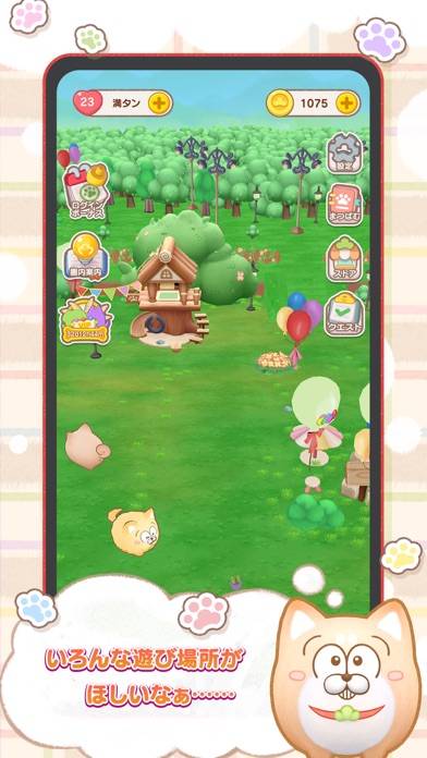 しばいぬやハスキーなど、6匹のまついぬたちを観察できます。ボールやクモなどのおもちゃで一緒に遊ぶことも可能。同じボールでもレトリバーははしゃぎ回る一方、ボストンはそっぽを向いているなど、反応はキャラクターごとにみんな違ってみんなかわいい!