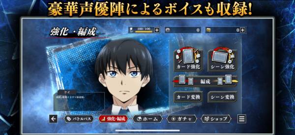 キャラクターカードの編成により、ステータスとスキルを決定。攻撃力と防御力に応じてスキルの成功率が決まるため、カード選びや育成も重要に。相手のイカサマを防ぐか、強引にでもイカサマを通しに行くか、自分の打ち方をより幅広く決められます。
