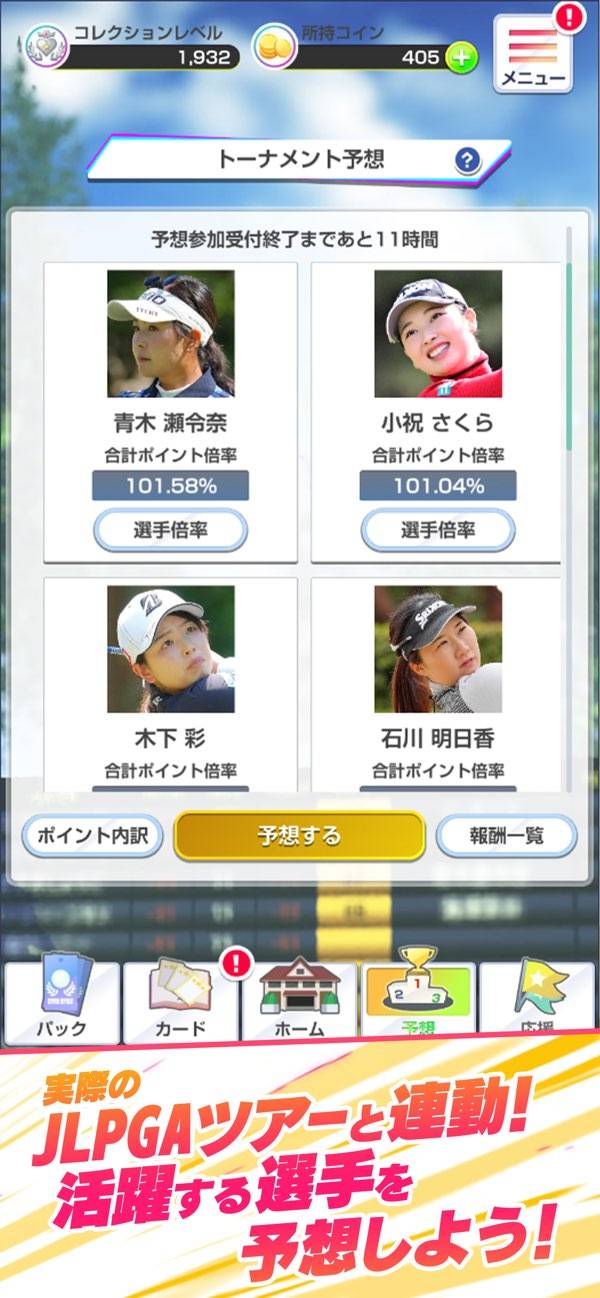 - 女子プロゴルファーのカードを集め、勇姿を楽しむコレクションアプリ