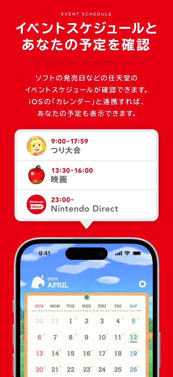 - 新作発売日やNintendo Directの放送日がカレンダーに収録。失念防止に