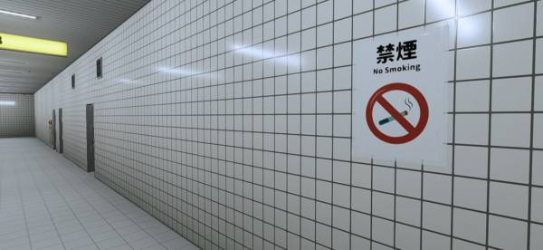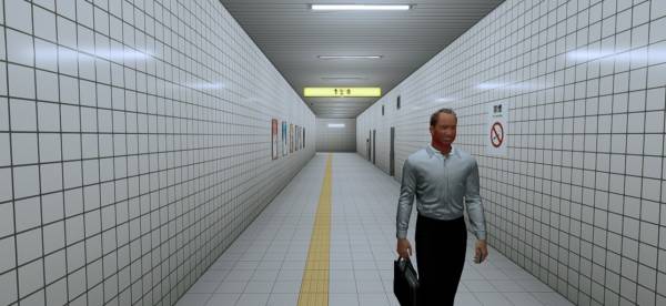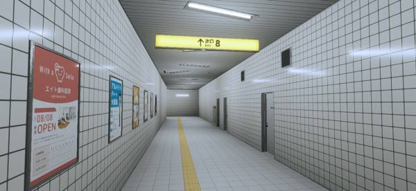 最初に地下通路を隅々まで観察しながら歩きましょう。天井の蛍光灯、看板、張り出されているポスター、奥から歩いてくる会社員風の人……などなど、そこまで広くないように見えて実は情報量が多め。かといって覚えきれないほどでもない、絶妙な塩梅となっています。