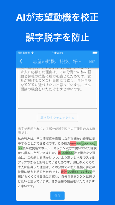 有料版ならAIが業界に合わせた具体的な例文を生成してくれます。生成された文章は自分の経験に合わせてカスタマイズでき、誤字脱字のチェックも自動実行。文章力に自信がない人でも、説得力ある履歴書が短時間で作れます。