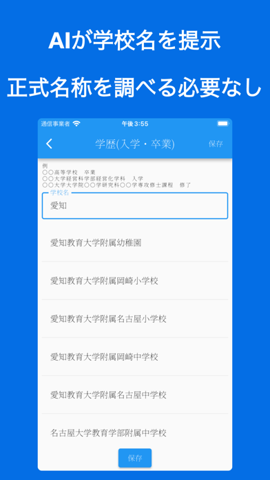 - スマホで手軽に履歴書を作成。入学・卒業年度も手間要らず