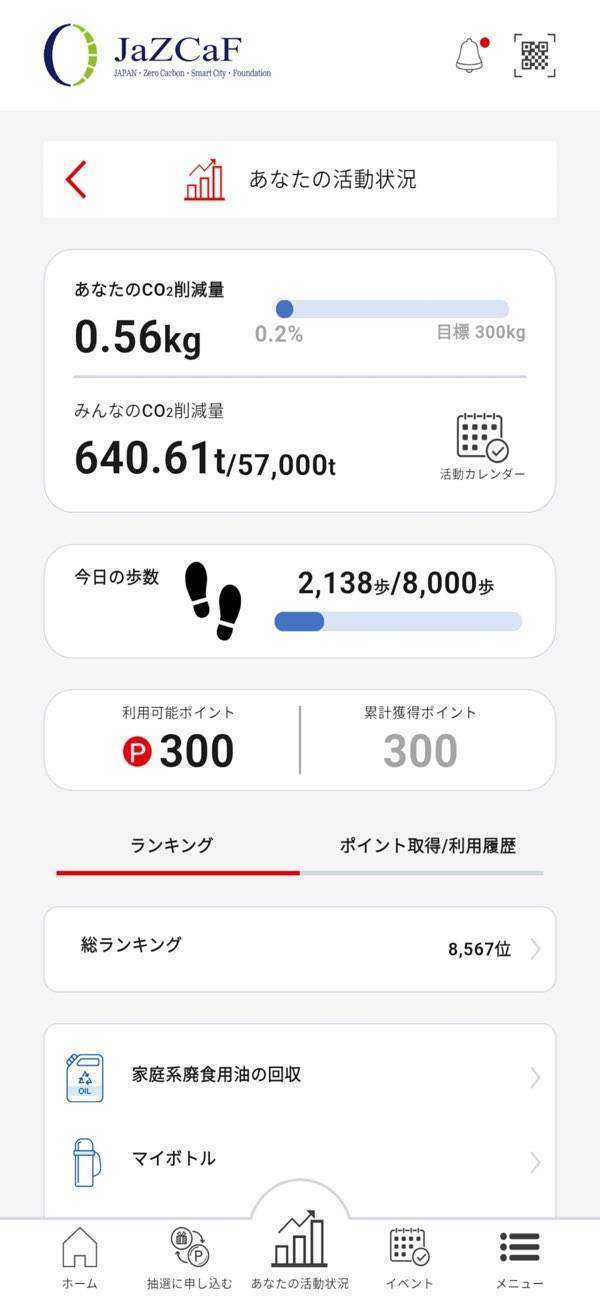 環境活動を記録するとポイントがもらえる