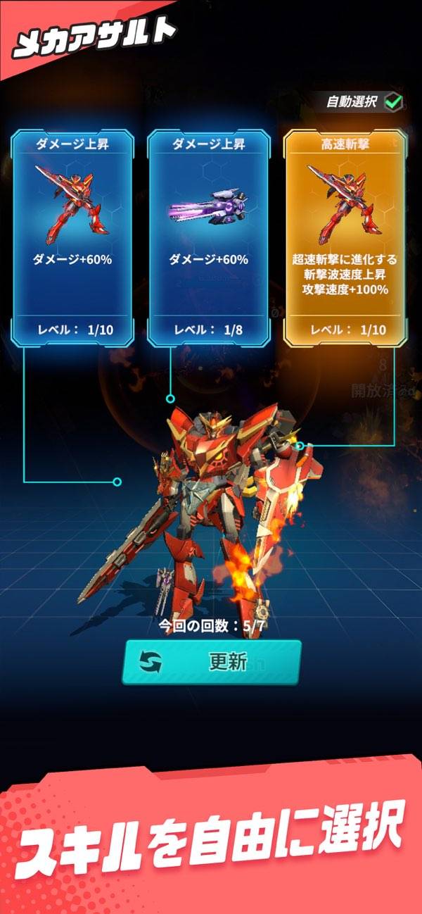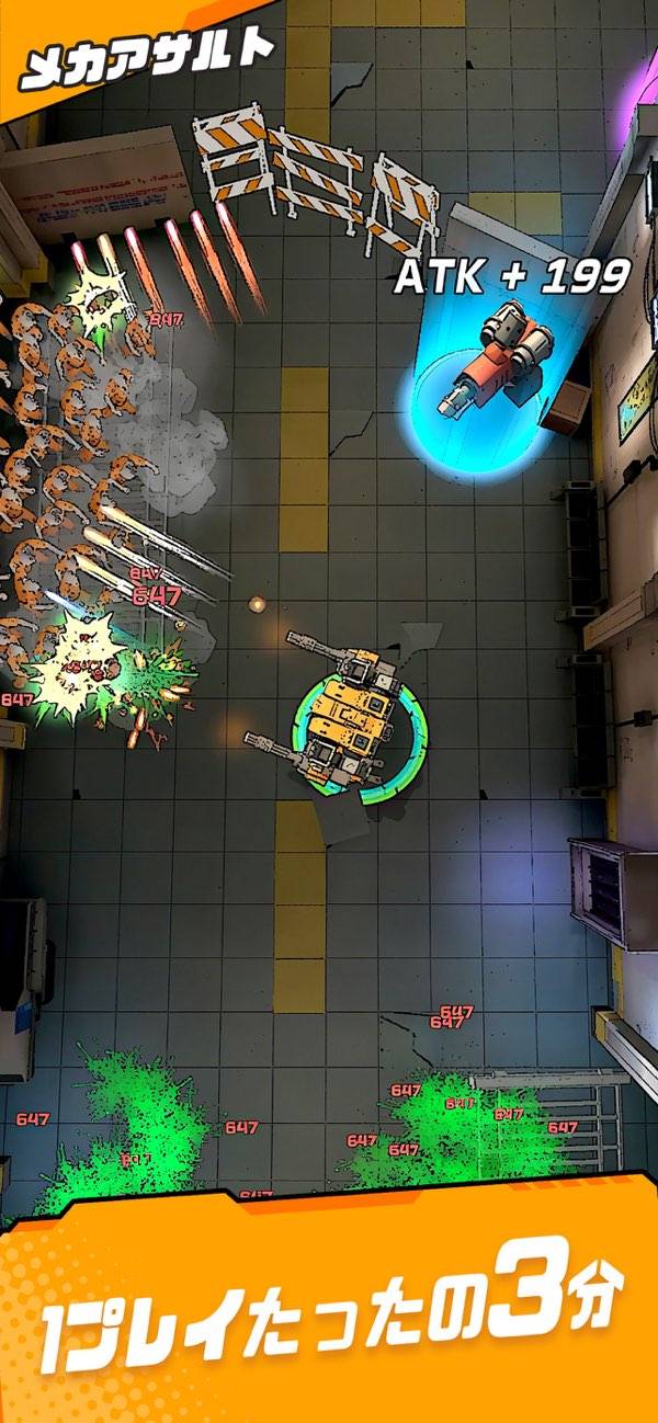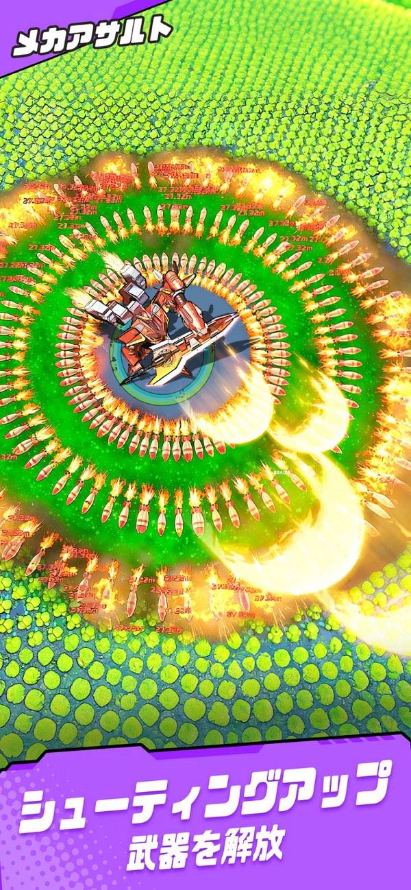 一言で言うとメカ版ヴァンサバ(スマホアプリ仕様)ですね。オリジナリティという意味では新鮮さに欠けますが、ちゃんと遊べる出来になっています。敵のワラワラ感も十分で、Google Pixel 8では処理落ちしました😓メカのカスタマイズ(っぽい)システムもあり、メカという題材も上手く活かされています。