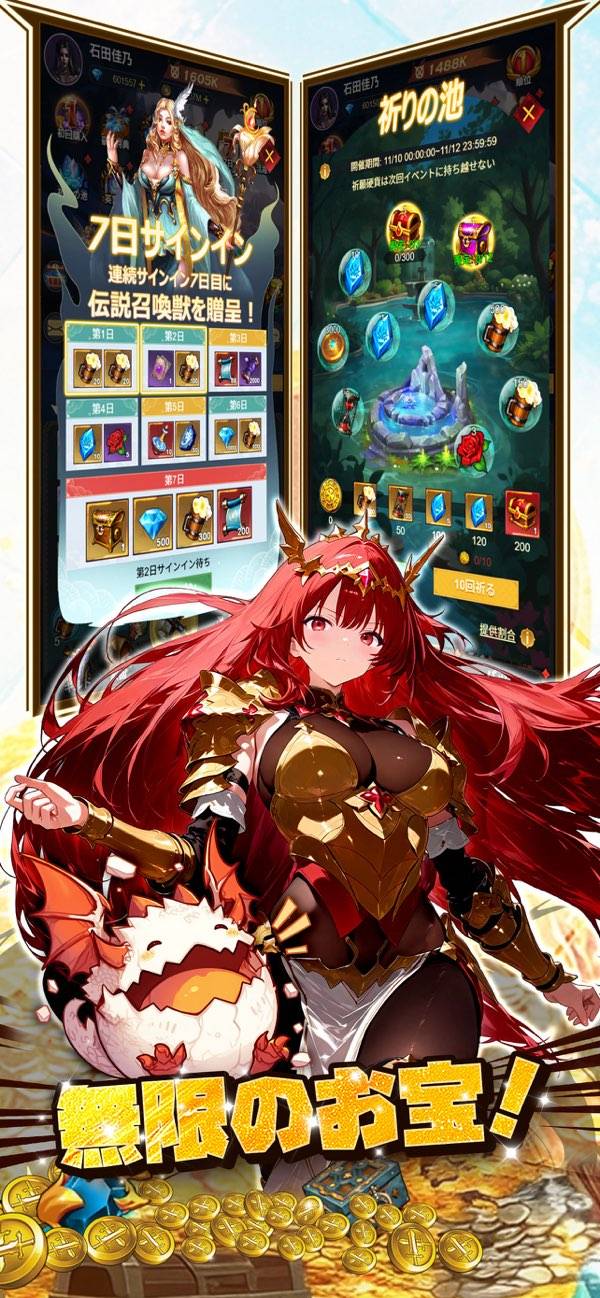 ドラゴンの卵を叩き、次々に装備を得ながらパワーアップしていくファンタジーRPGです。まさにガチャをそのままRPGの中核に落とし込んだようなシステム。