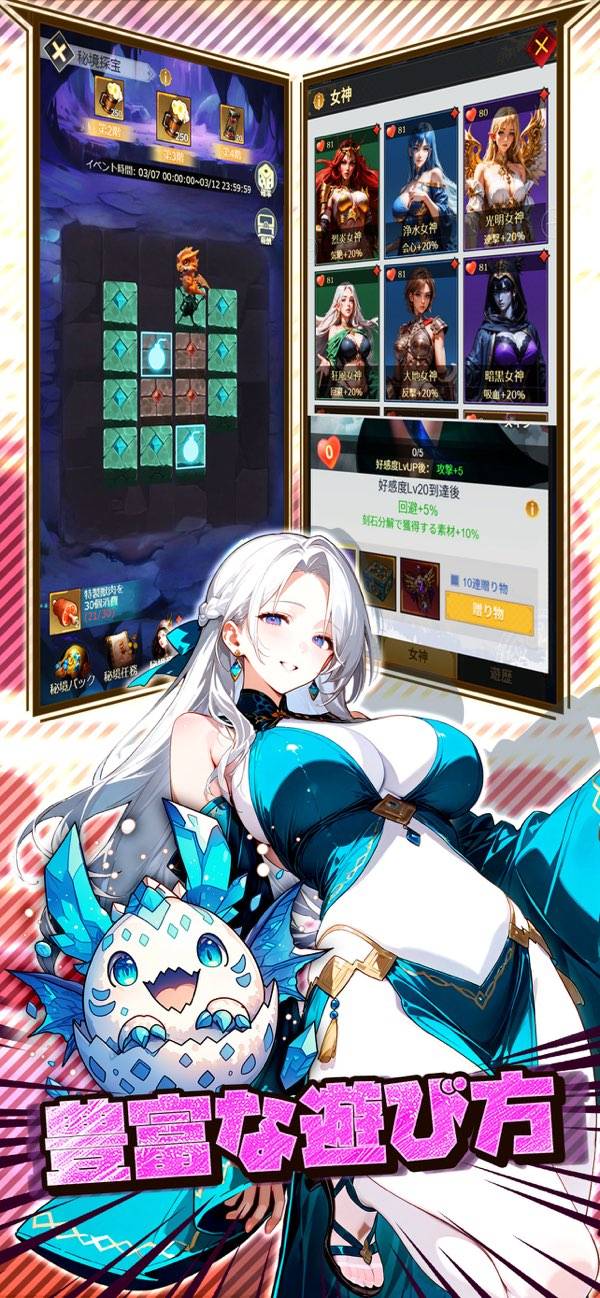 - 女神や農場など、徐々に開放されるコンテンツがモチベーションに