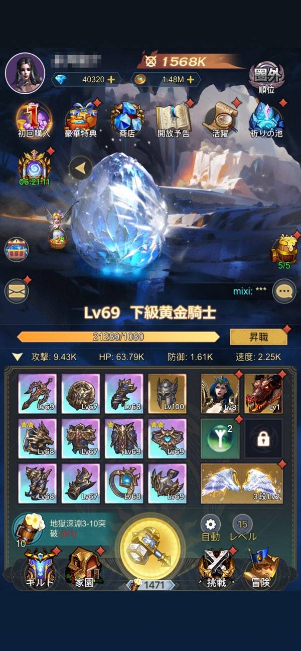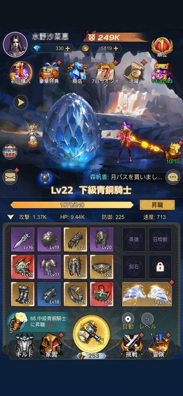 ゲームを進めると、徐々に新しいコンテンツが開放されていきます。装備枠精錬、農場、女神がロックされており、公式的には女神が目玉コンテンツである様子。果たして女神はどんな効果をもたらしてくれるのか、そのときまでひたすらドラゴンの卵を叩きましょう。