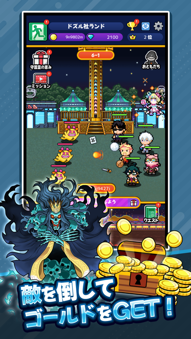 人気実況者グループ・ドズル社を主役とした放置RPGです。ドズル社のテーマパーク・ドズル社ランドが謎のゴーストに乗っ取られる事態が発生。奪還のためにドズル社メンバーが立ち上がります。バトルはオートかつ、アプリを閉じても自動周回するのでお手軽。メンバーをサクッと強化し、どんどんステージを突破しましょう。