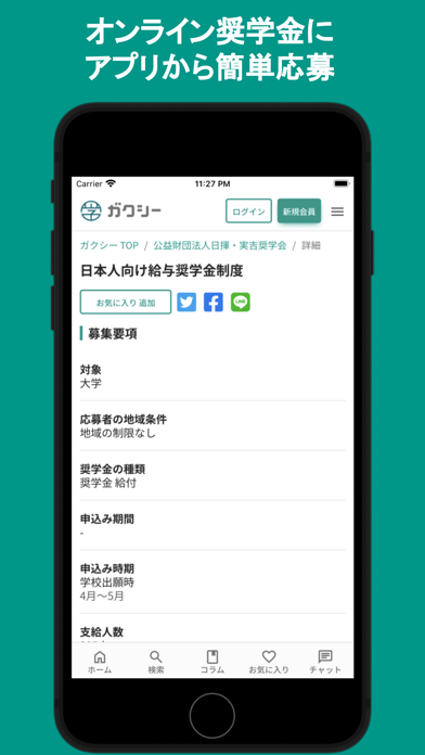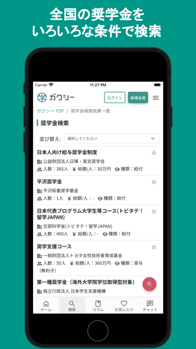 - 給付型奨学金が多数掲載。詳細を確認後、そのまま応募も行える