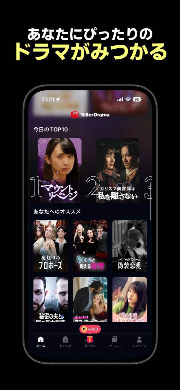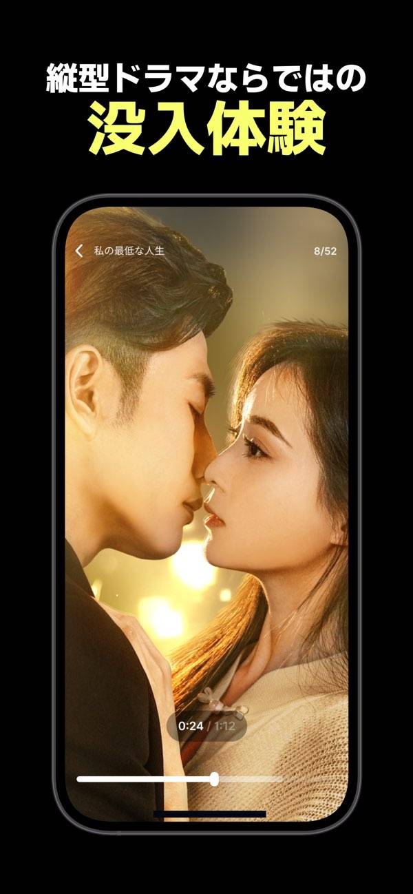 ショートドラマ入門としてピッタリのアプリがこちら。1話1分半ほどのショートドラマが多数配信されています。1分半と言えど内容は濃密で、続きが気になる心憎い見せ方となっています。