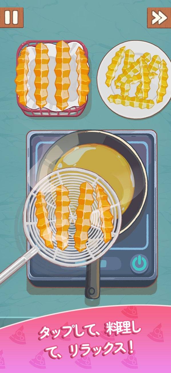 料理がそのままゲームになりました。ピザや目玉焼き(サニーエッグス)などの料理に挑戦しましょう。目の前に広がるのは材料と調理器具。それらを用い、見事料理を完成させればクリアです。