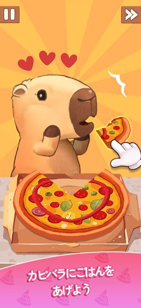 材料と調理器具を使い、料理の完成を目指しましょう。ピザでは生地を伸ばし、ソースと具材を乗せ、オーブンで焼き上げ、カットすれば完成。下ごしらえから盛り付けまで細かく再現されており、完成時の達成感もひとしおです。