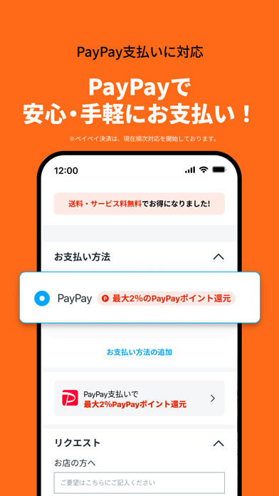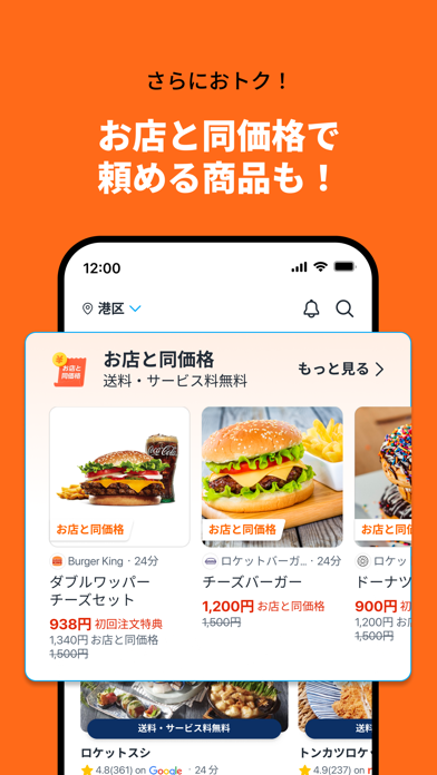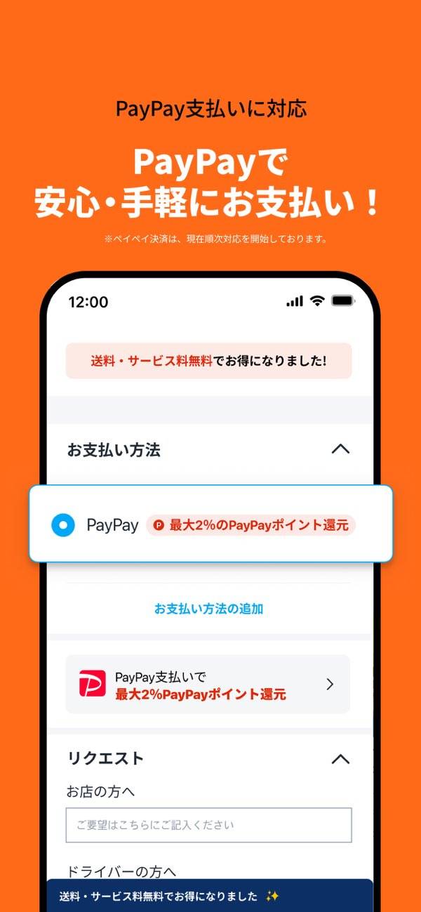 ほかアプリでは料理代以外に配送料とサービス料がかかりますが、本アプリでは無料。「1,000円の料理なのに、支払いが1,500円になっている」なんてことはありません。ちょっとごちそうを食べたい気分のときも、余計な費用を気にせず注文できます。