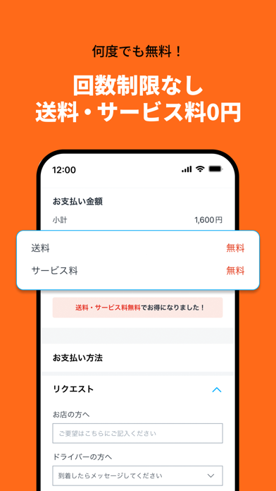配送料とサービス料が無料のフードデリバリーアプリです。多くのアプリでは、料理代以外にもさまざまな料金がかかりますが、本アプリではメニューの価格だけで注文できます。利用回数や注文金額に制限がなく、お気に入りの店舗を何度でもお得に利用可能。忙しい日常でも、お得に手軽に食事できますよ。