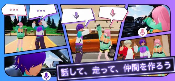 ほかのユーザーとアバターを持ち寄り、ドライブ気分を味わえる機能も。バーチャル空間でドライブしながら、ボイスチャットを通じ会話を楽しめます。本アプリ特有のいくらでもスピードを出せる特徴を活かし「いや、速いよー!」と盛り上がるのもまた良し?