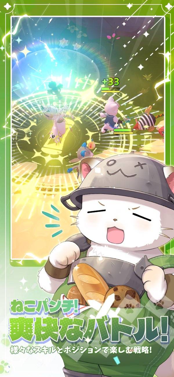 バトルに勝利し、ストーリーを進めていく流れ。オート対応のお気楽システムとなっており、ナイトや魔法使い風のネコたちが一生懸命に戦います。敵キャラもコミカルかつ愛らしいデザインで、眺めているだけでもなんだか幸せな気分になること請け合いです。