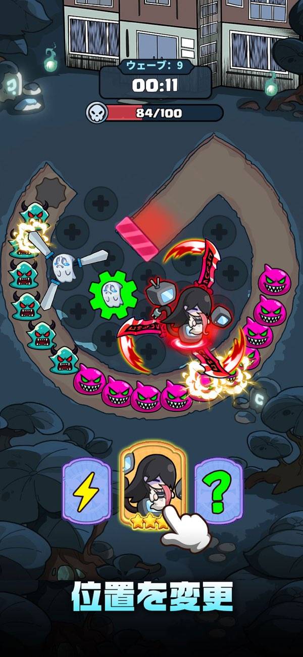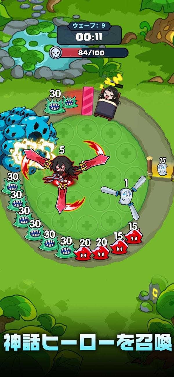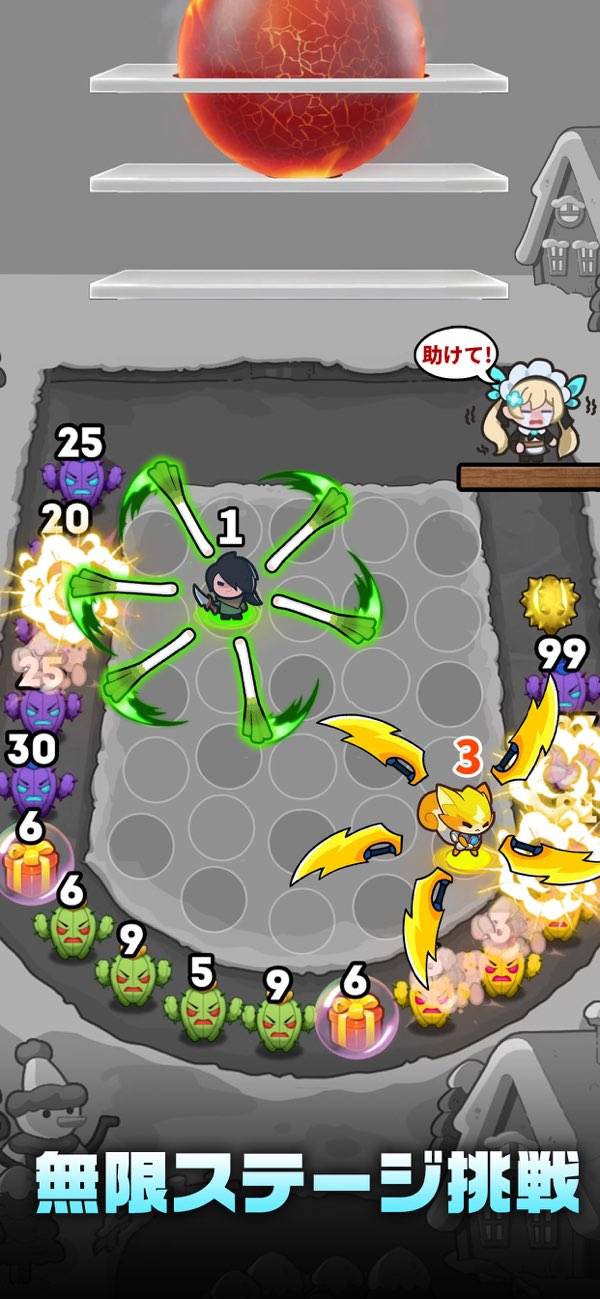 タワーディフェンスを軸に、ヒーローの移動や合成強化、運頼みの祈願などバトル中の選択肢は膨大。頭も指も忙しいプレイ感に仕上がっています。