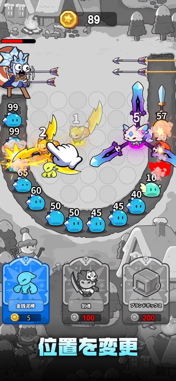 - ヒーローをガンガン召喚&合成し、最適な位置に移動。程良い指の忙しさ
