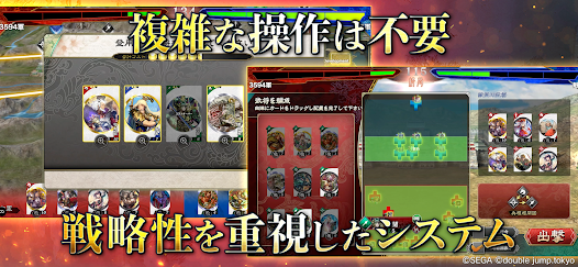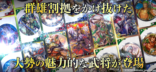 戦略が物を言う三国志系カードバトルゲームです。大元はセガのアーケードゲーム『三国志大戦』で、本作はセガのライセンスを受け制作されたタイトルとなっています。