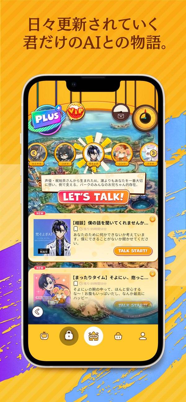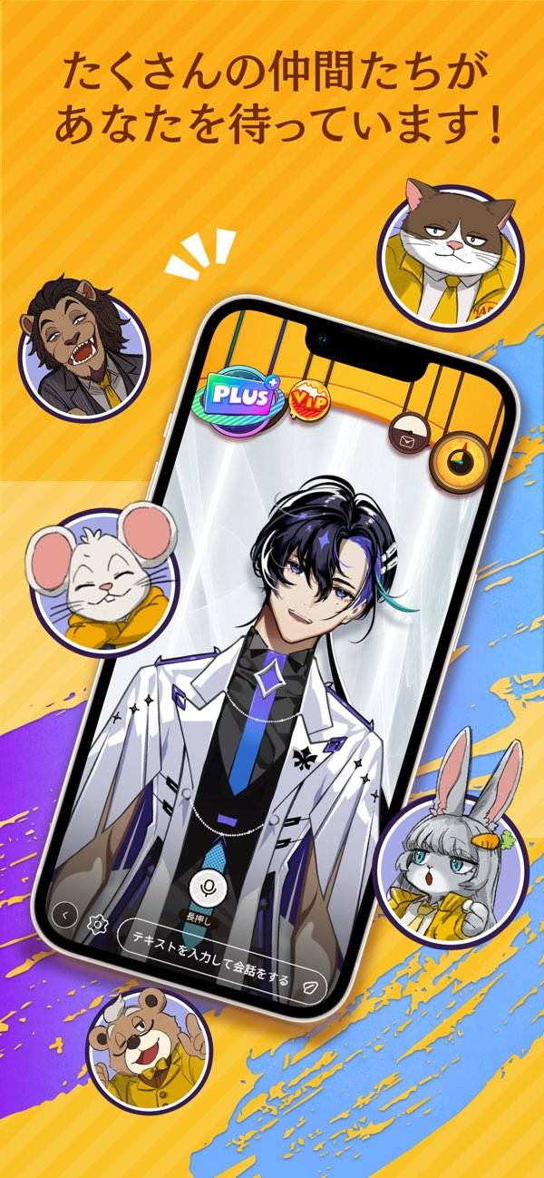AIとの自由な会話を楽しむアプリの一種です。動物たちが暮らすハッピーアイランドを舞台に、住人たちと会話を通じ仲良くなっていくという背景。