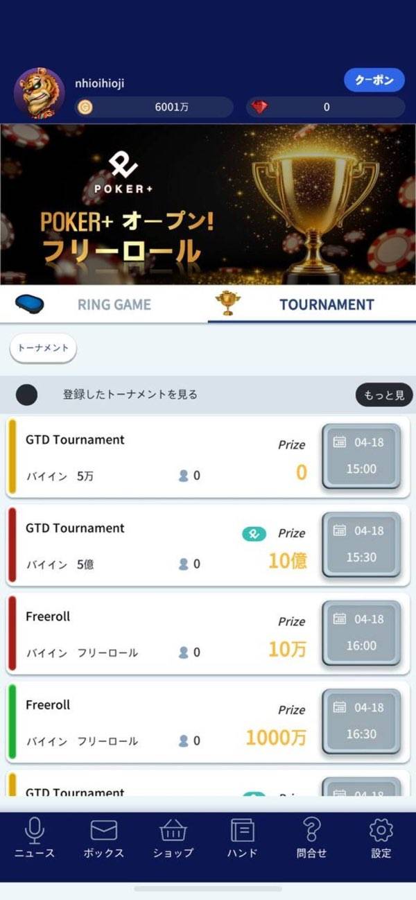 - 高額のコインが用意されたトーナメントも開催されており、腕試しに十分