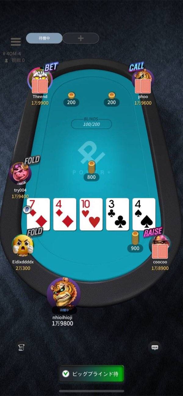 破綻なく、安定してテキサスホールデムの駆け引きを楽しめます。たとえ役が弱くても、強気のベットで相手のフォールドを誘うのも一つの戦略。また思考時間さえも駆け引き要素となり、相手がベットするか迷っている=微妙な役かも、という読みも存在するのです。