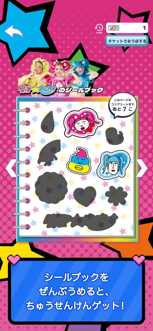 サブコンテンツもサービス満点。リズムゲームを遊ぶとダイヤを獲得し、ガチャに挑戦できます。ガチャに挑戦するとシールブックを入手。コンプリートを目指す楽しみがあるほか、シールブックを3枚うめると、限定グッズの抽選に応募できるのです。
