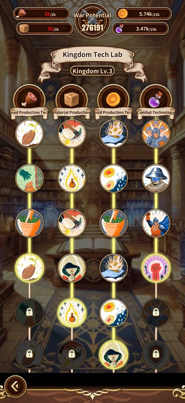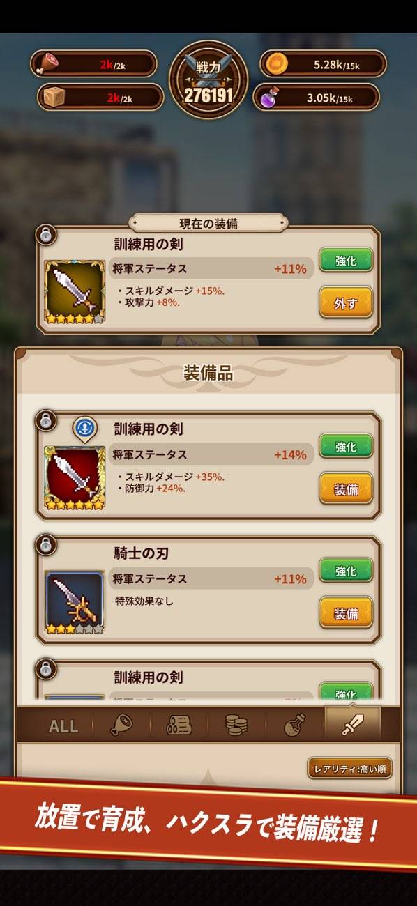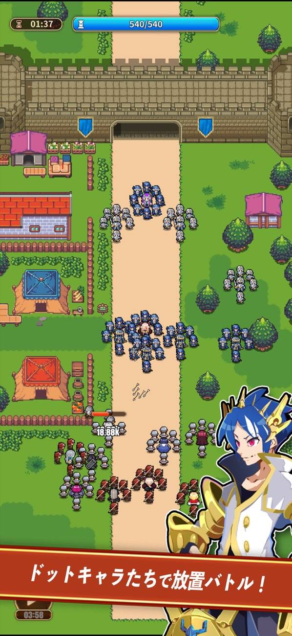 表面的には放置で遊べるお手軽さがある一方、手をかけられる要素も豊富。城やバトルで配置するユニットの育成や研究による全体強化といった要素もあり、ハック&スラッシュ的な成長感も味わえます。