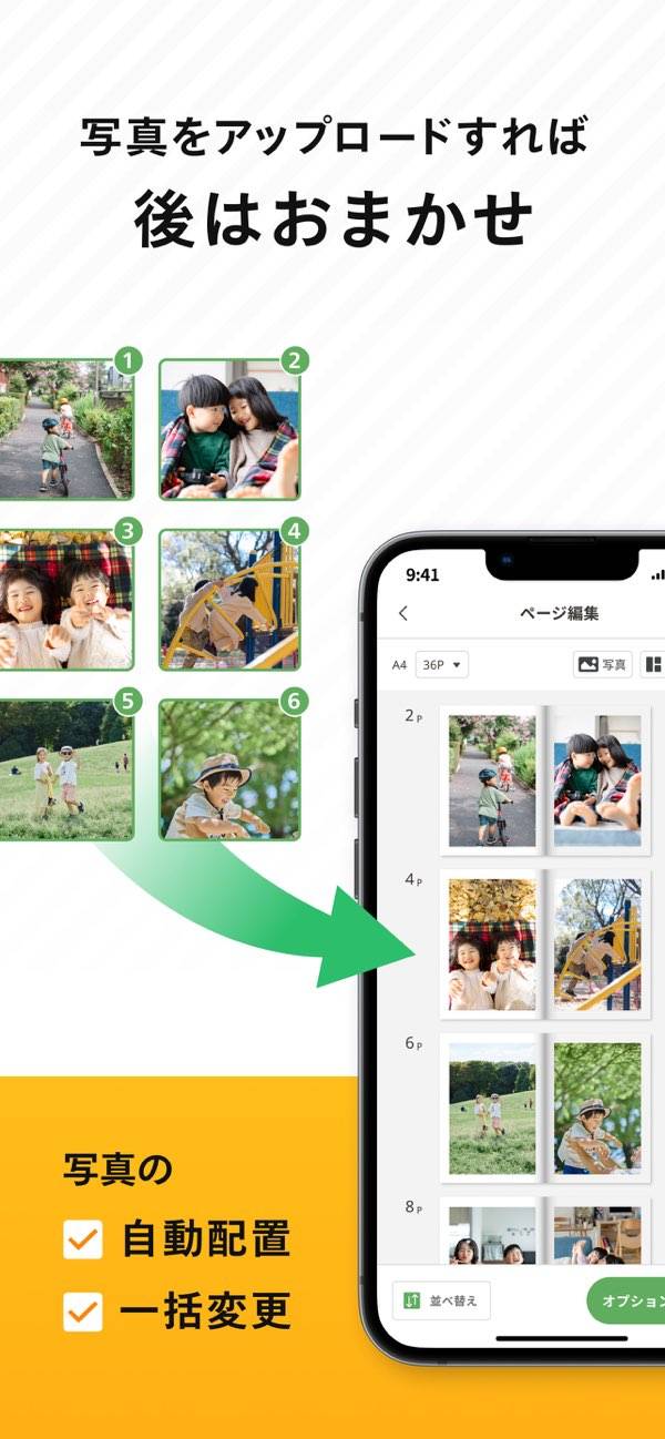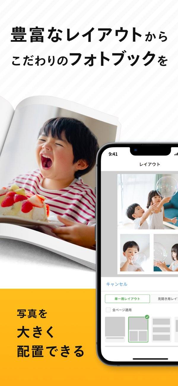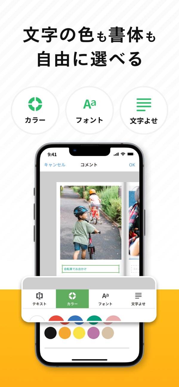 写真のレイアウト変更やコメントの挿入も行えるようになっています。均一に並んだ写真であればきちんとした印象になり、大小の写真を並べればメリハリのある印象に。さらにコメントを添えることで、撮影時の気持ちも一緒に残せます。