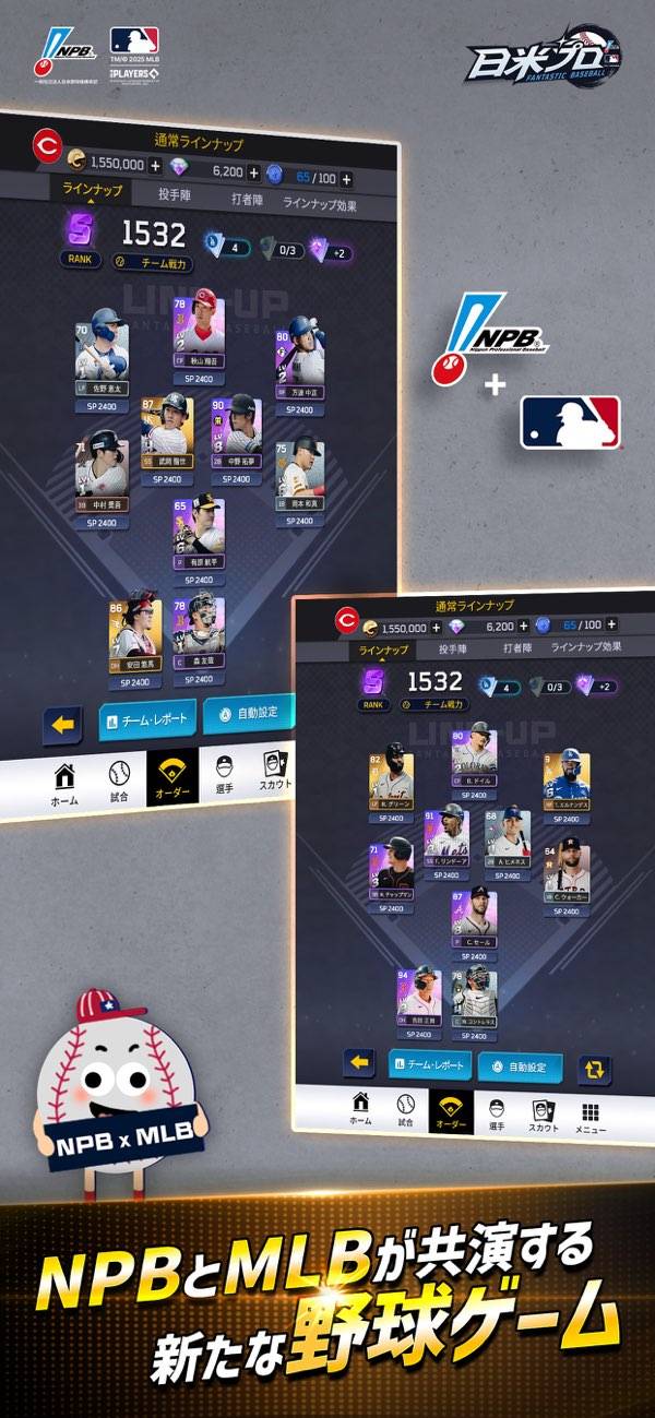 1チームあたりの選手数もたっぷり。日米でオールスターを組むのも、NPBかMLBで固めるのもプレイヤー次第です。